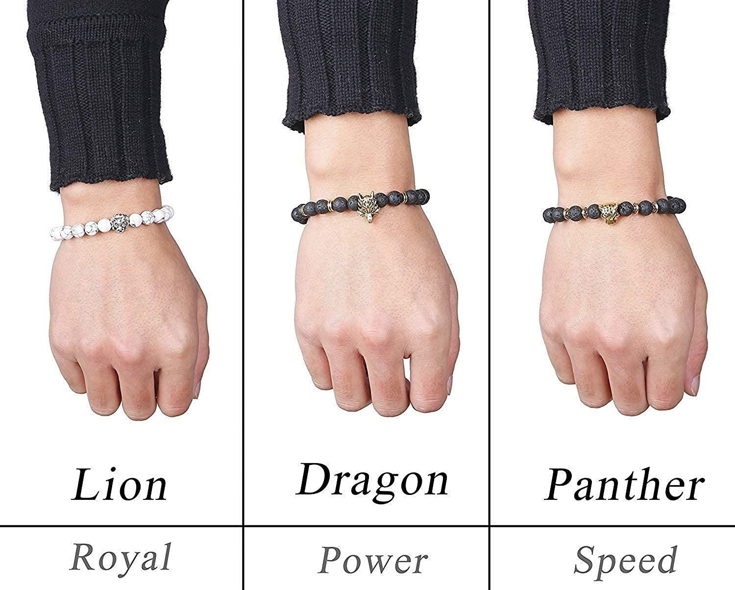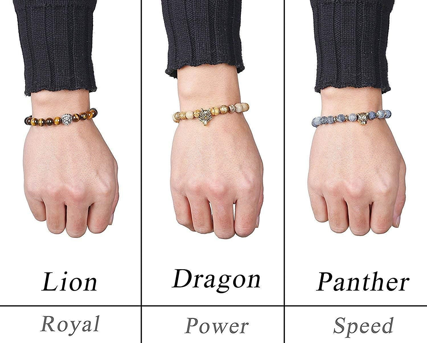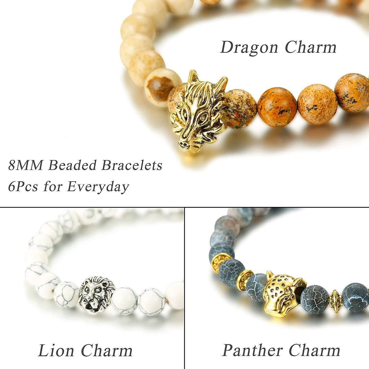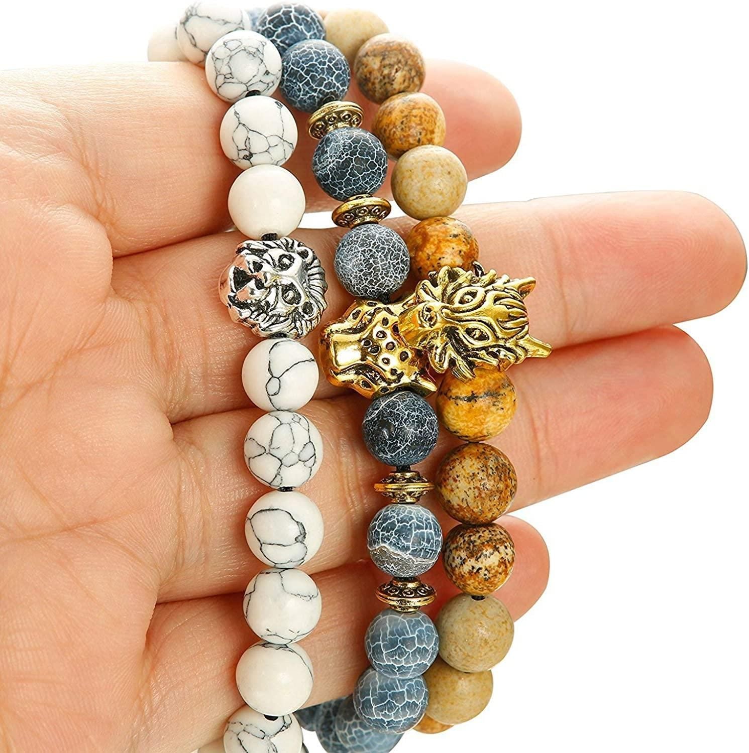 STONE BRACELET SET --- One order include 12pcs stone beads bracelets; with differents stone and styles: lion; tiger; dragon; symbolizes Royal/Speed/Power; this is what men desire and pursue. Reasonable and economical price for you.