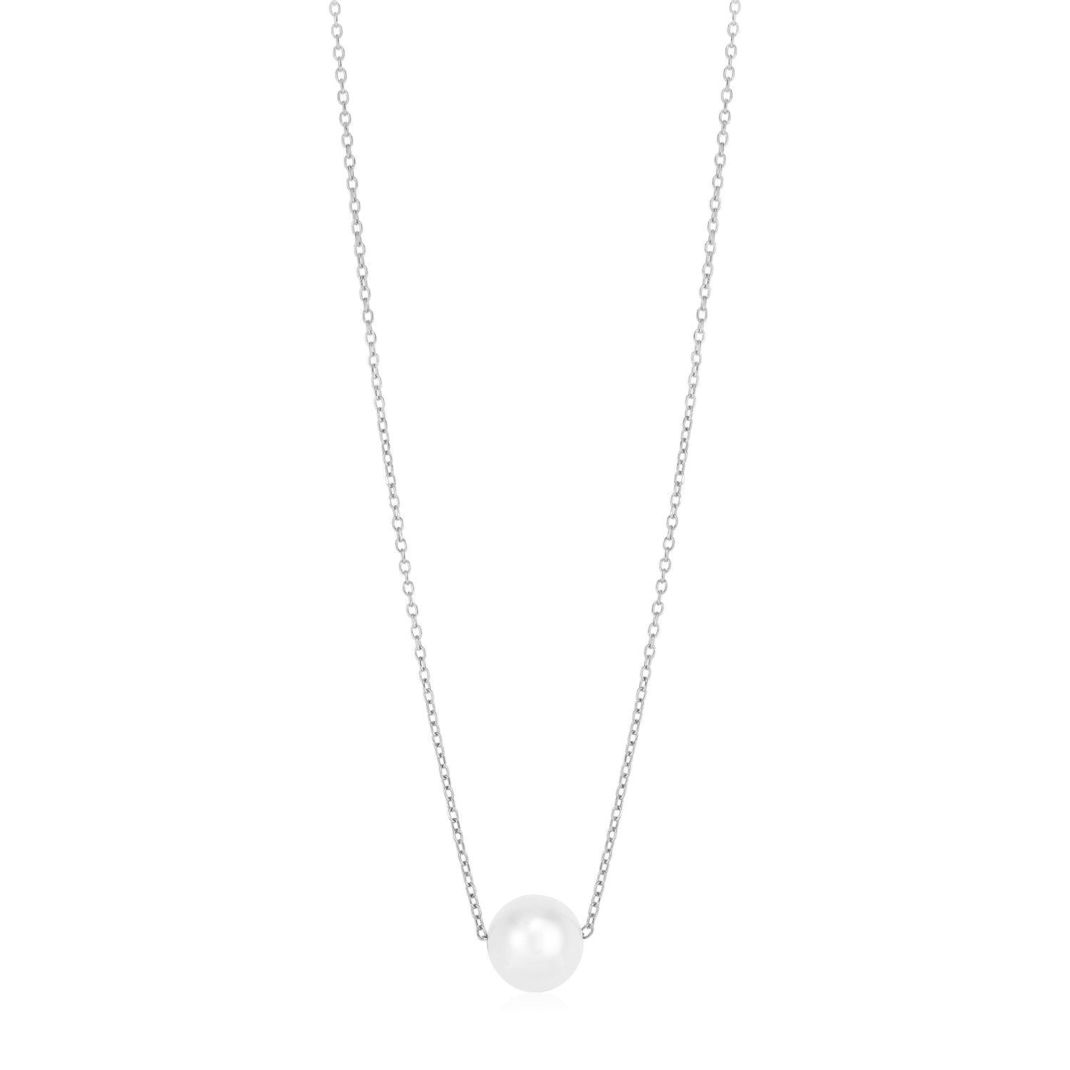 A single perfect pearl gorgeously adorns fine chain on this exquisite 14k white gold necklace. Necklace is 18 inches long.