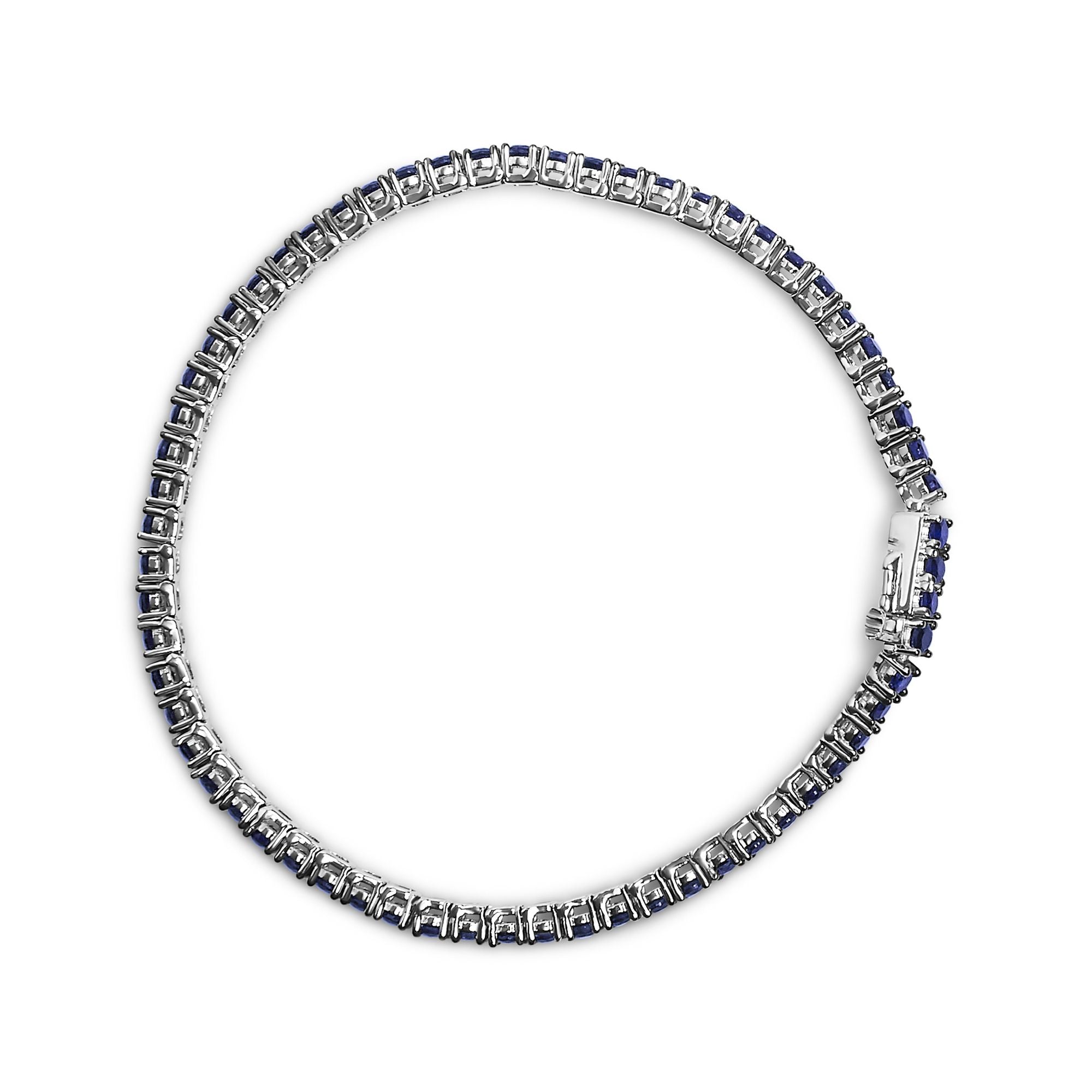 Indulge in the epitome of elegance with our exquisite .925 Sterling Silver Tennis Bracelet. Crafted with meticulous attention to detail, this stunning piece showcases the mesmerizing allure of 64 round lab-created blue sapphires. Each gemstone, carefully set in a shared prong design, radiates a captivating blue hue that symbolizes wisdom and royalty. The color-treated sapphires, boasting a remarkable clarity of AAA, weigh a total of 5 3/4 carats, adding a touch of opulence to your wrist. The 7.25" inches bracelet, designed exclusively for women, is secured with a box clasp, ensuring a secure and comfortable fit. Elevate your style and embrace the allure of sapphire with this enchanting tennis bracelet.