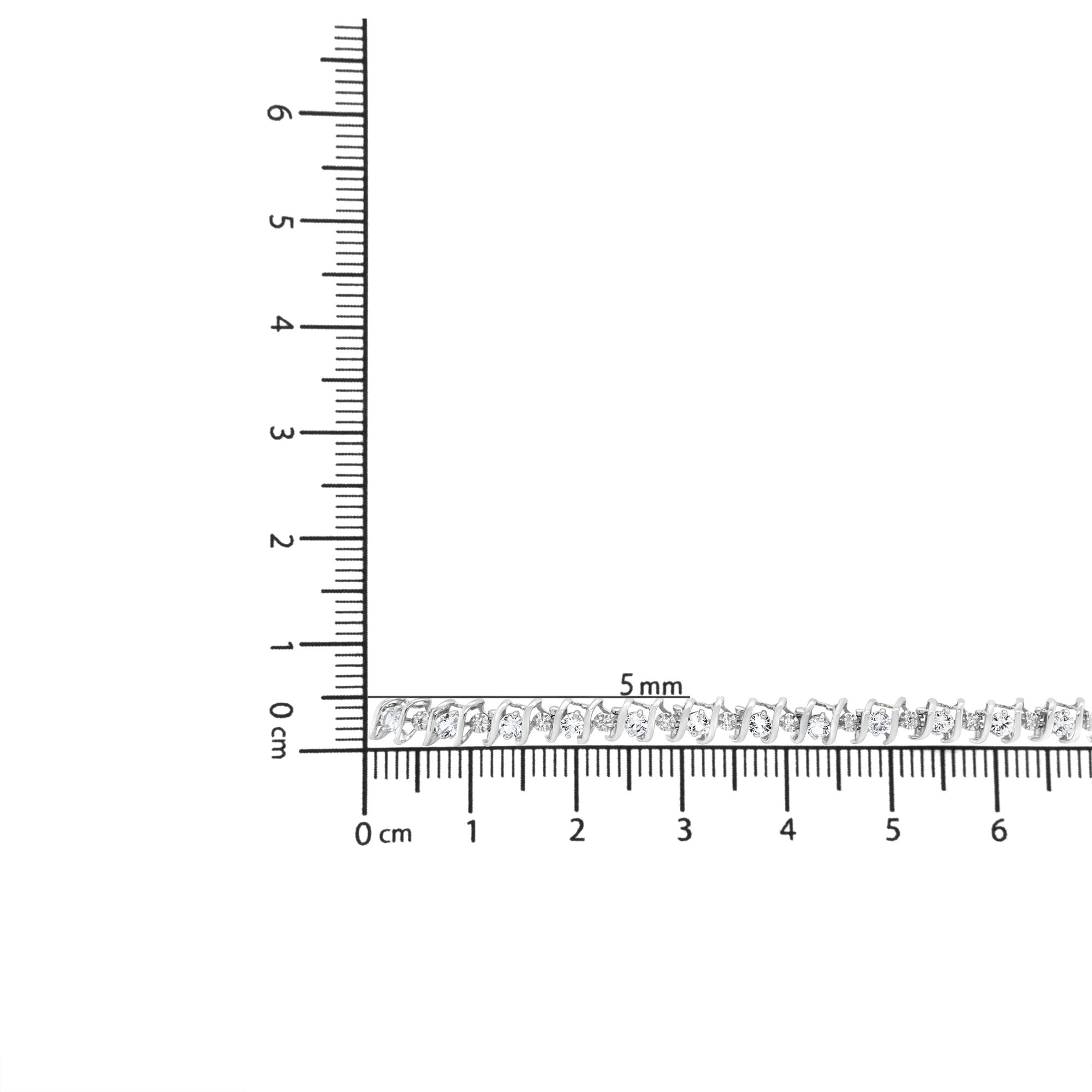 Vivid created birthstones and sparkling white diamonds are set in this S-link tennis bracelet crafted in cool .925 sterling silver. The bracelet features 20 sparkling diamonds set in miracle-plate settings that multiply their sparkle, for a total diamond weight of 0.15 carats. The 20 sustainably lab-grown birthstones alternate with the diamonds in a delicate dimensional and open setting, adding brilliant color to this feminine fashion bracelet. The perfect gift to celebrate a birthday, simply choose the birthstone that corresponds with your loved one's birth month.